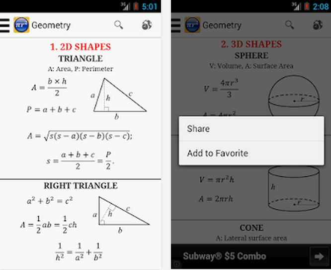 “Available in many languages, this is a perfect app on Google Play that provides all basic formulas in mathematics. It’s very convenient for all students in high school or university and engineers to look for any easy or complicated formulas.”